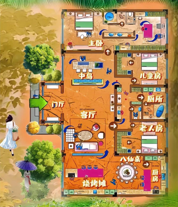 十三米大横厅,有一个大惊喜,十九米厨柜,就是自建房给世界带来的好运,除了满足吃货自由,更像自建房有一个温暖的梦,真正的包容是布局个性化,让玫瑰,绽放出牡丹的仪态。